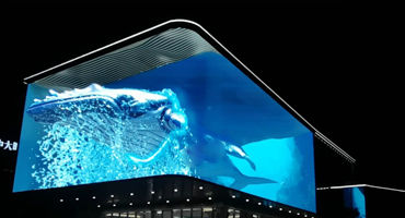 LED大屏實現(xiàn)裸眼3D其實是在二維畫面中借助物體的遠近、大小、陰影效果、透視關系構建出三維立體的效果。由兩個不同角度的面組成。顯示屏將畫面折疊90度,利用符合透視原理的視頻素材,左側屏展示圖像的左視圖,右側屏展示圖像的主視圖,當人站在轉角的前方觀看時,便同時看到物體的側面和正面,呈現(xiàn)逼真的立體效果。