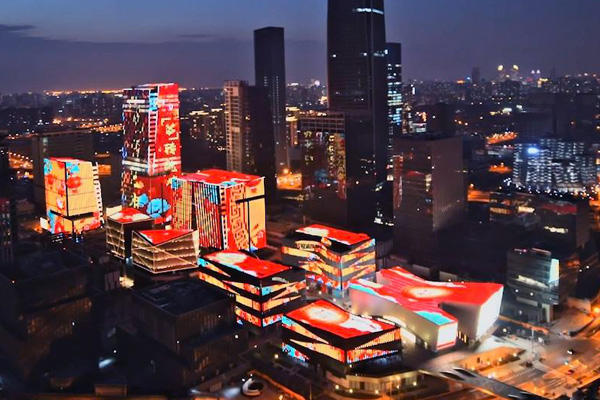 千余平米透明屏點亮天津“水立