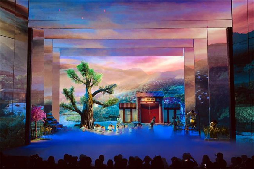 漢頌劇院位于湖北省棗陽漢城景區,建筑面積8500平米,可同時容納近1000人觀看演出。整個劇場大屏幕視頻播控部分均采用深工S6-FHD多媒體服務器。包含一臺主控服務器和七臺播放端服務器。面積共1062平方米,包含:10米高18米寬舞臺主屏、三道邊沿幕屏、266平米天幕及330平米兩側觀眾席視頻,不經如此,觀眾席兩側國內首創6塊兩面翻機械結構,達到視頻與實景的瞬間轉換,轉為實景時,每塊兩面翻分為上下兩塊實景,下層演員可從實景結構中走下觀眾席與觀眾互動,上層演員可與觀眾對話,叫賣聲等,觀眾仿佛進入到漢代街市。