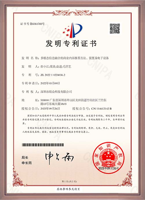 多模态信息融合的商业内容推荐方法、装置及电子设备专利
