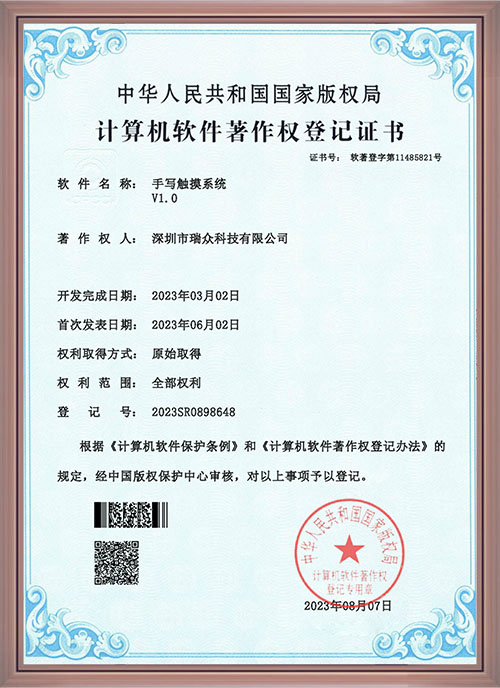 手写触摸系统软著证书