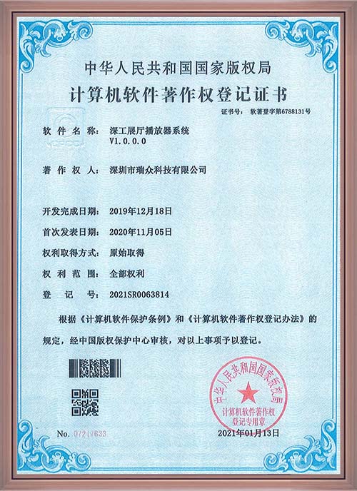 深工展厅播放器系统软著证书