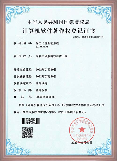 深工飞屏互动系统软著证书
