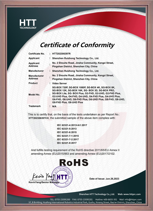 深工 产品RoHS认证证书